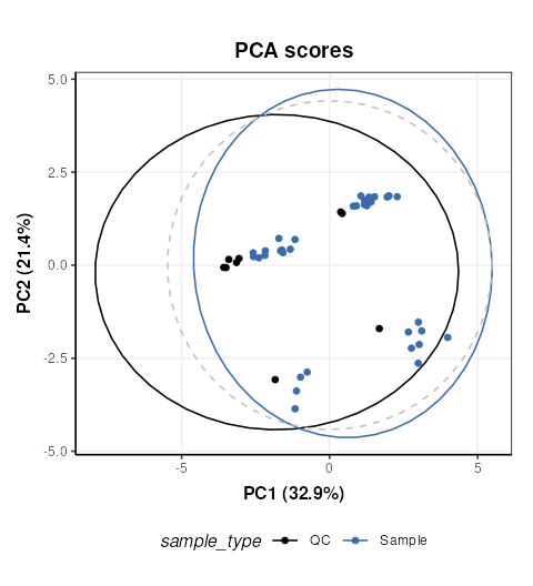 First we will use PCA to look at the QC samples in order to make an assessment of the data quality.